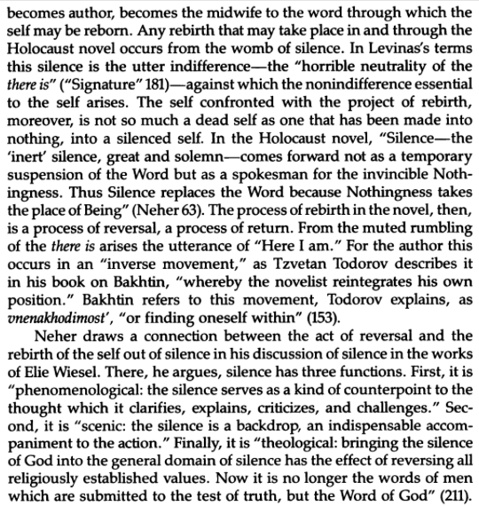 From The Shriek of Silence: A Phenomenology of the Holocaust Novel, by David Patterson: